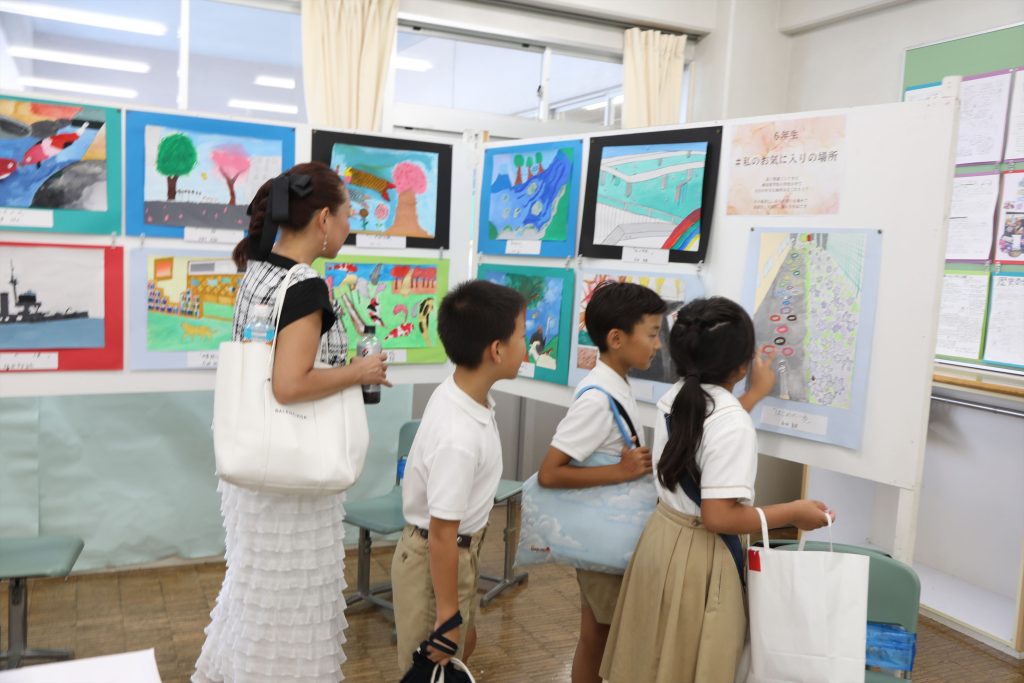 子どもたちは他学年の教室の展示を興味津々で見て回っていました🎨