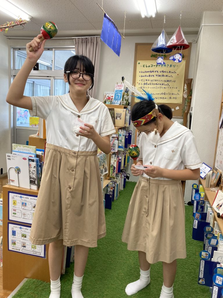 低学年の読書の時間では、恒例のお楽しみ「おにぎり描き」。