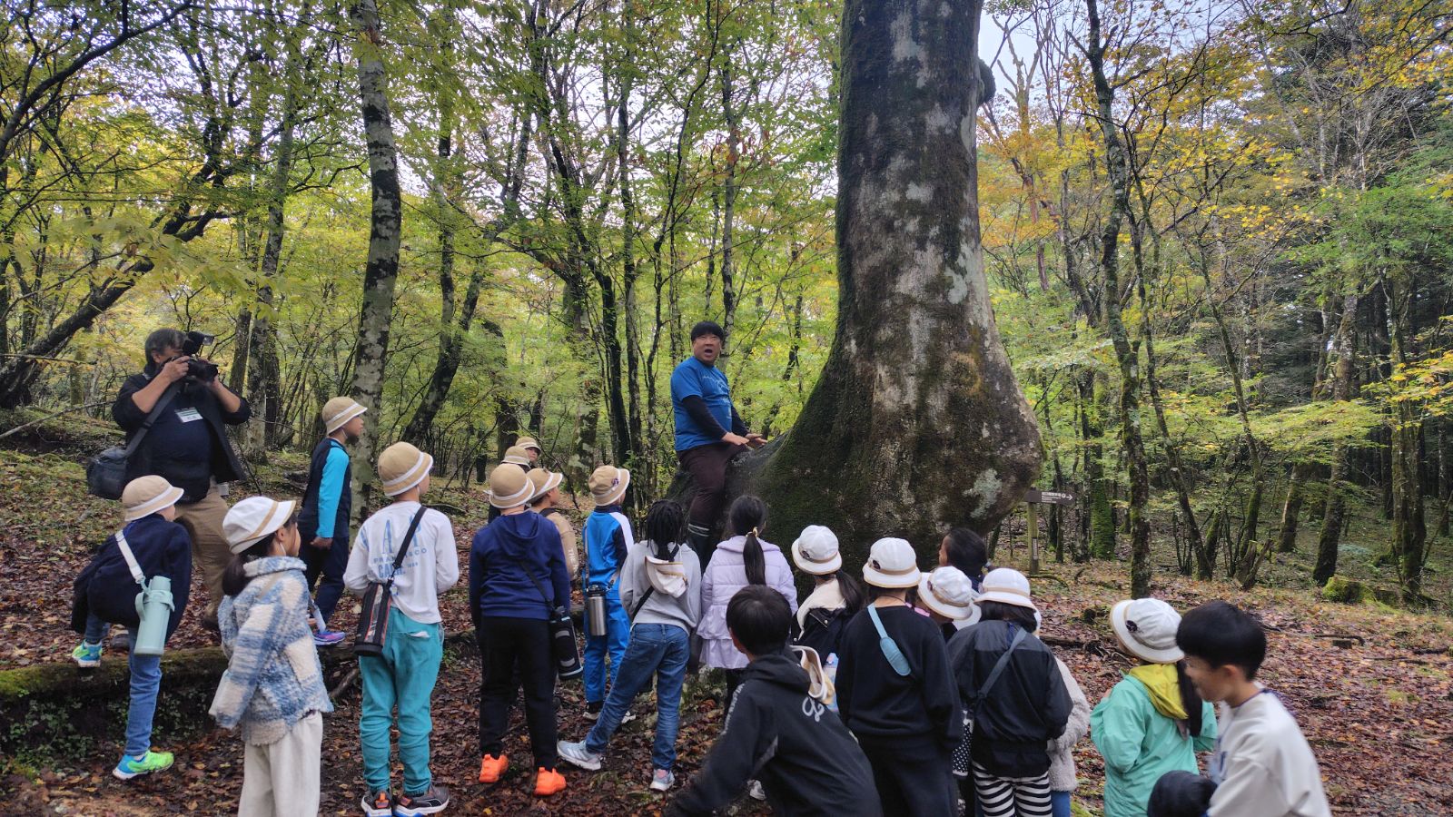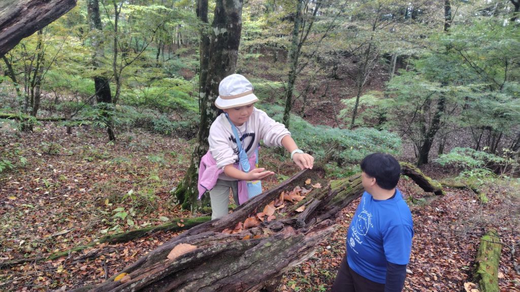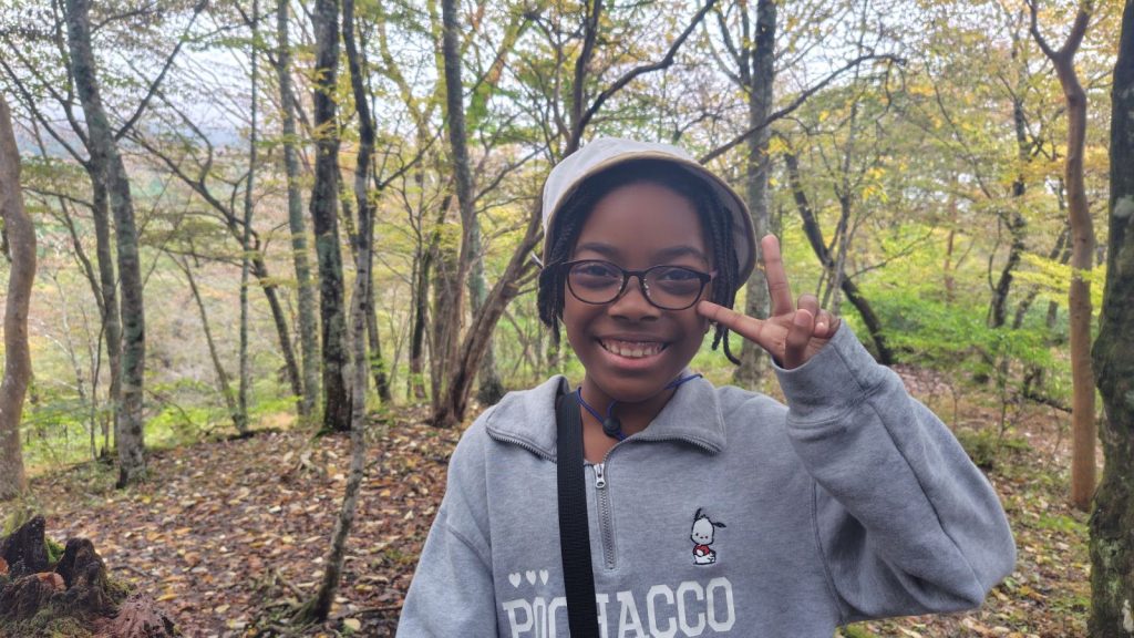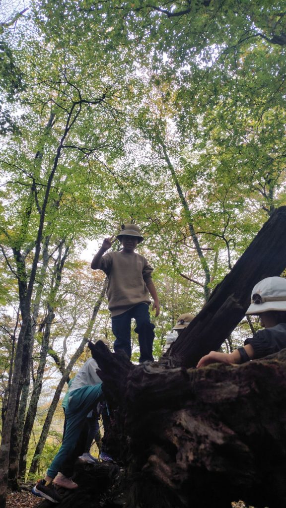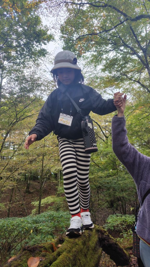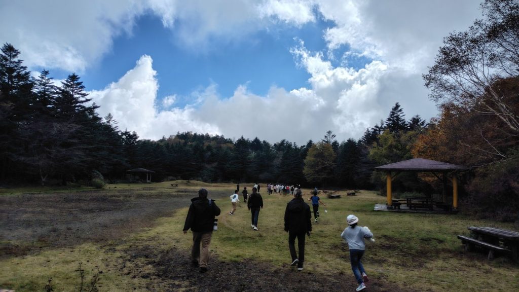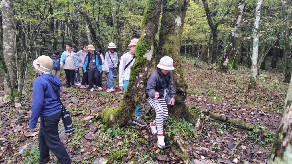 朝の対面式では少し緊張した様子の子どもたちも、自己紹介やゲームを通してだんだんと笑顔に。バスの中では歌をうたい、お昼のお弁当も一緒に食べて、いよいよ富士山麓へ。
