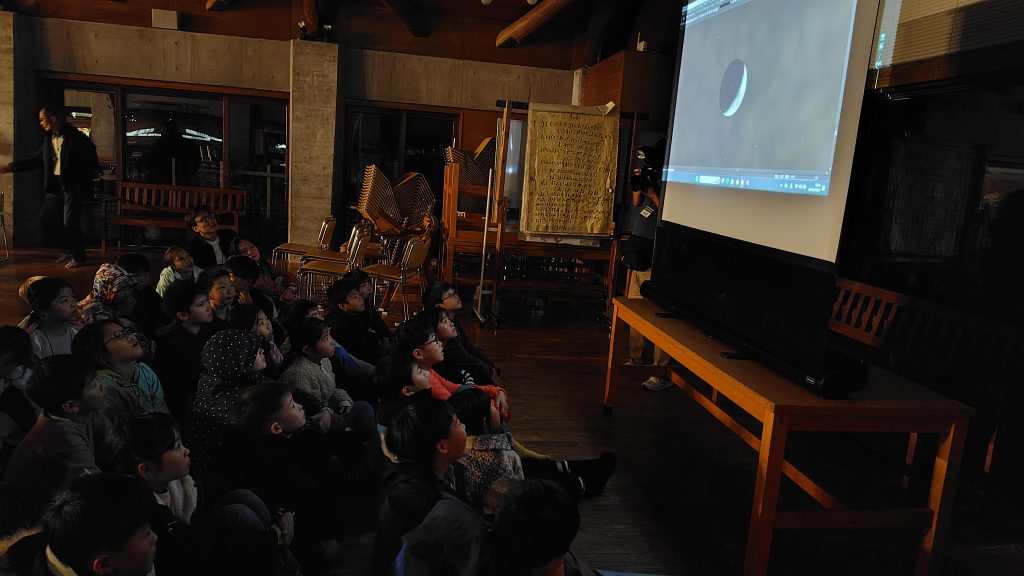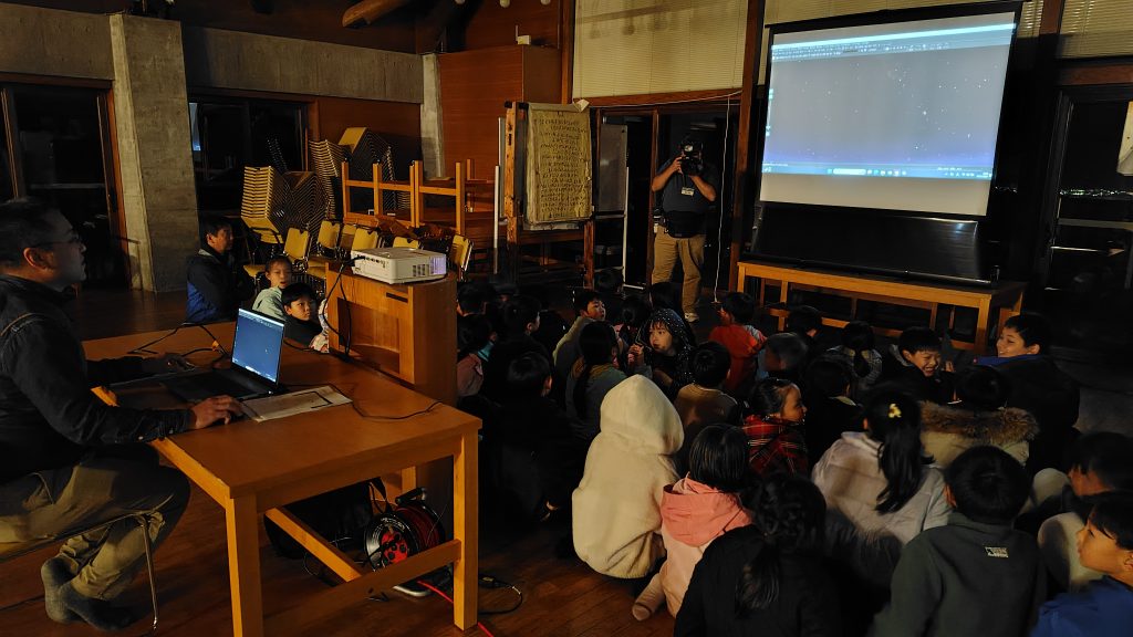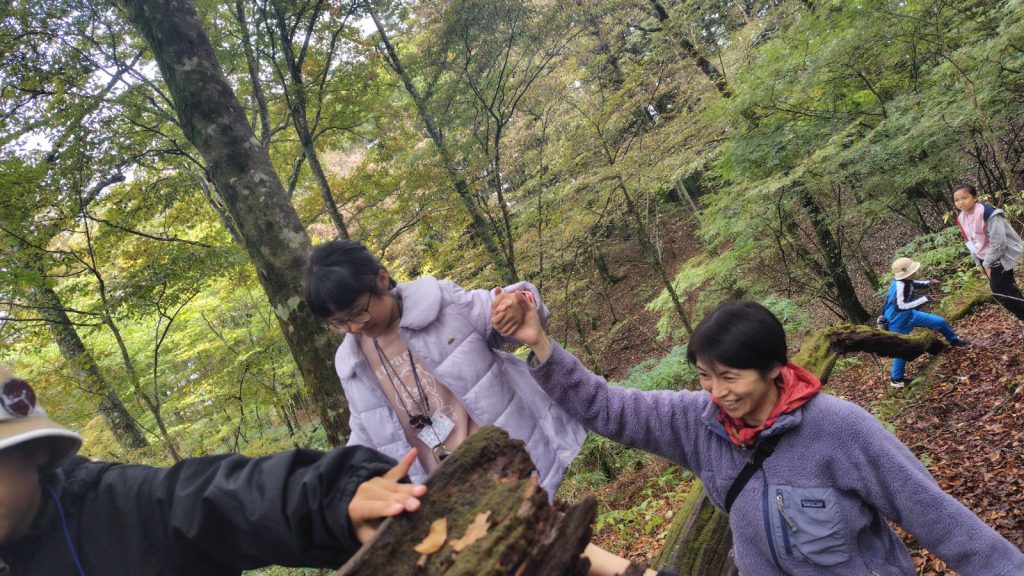 1年ぶりに再会した富士山YMCAのリーダーさんたちに「ただいまー!」と元気にあいさつし、西臼杵の森へ出発。散策や木登り、動物の足跡探しなど、声を掛け合いながら元気に活動しました。夕食も一緒に囲み、夜は三日月、天の川、流れ星の星空の下でナイトハイク。リーダーさんたちの解説を聞き、夏の大三角形や土星、天体望遠鏡で月面やプレアデス星団を観察しました。言葉や国をこえて、心が通い合う瞬間も数々みられました。