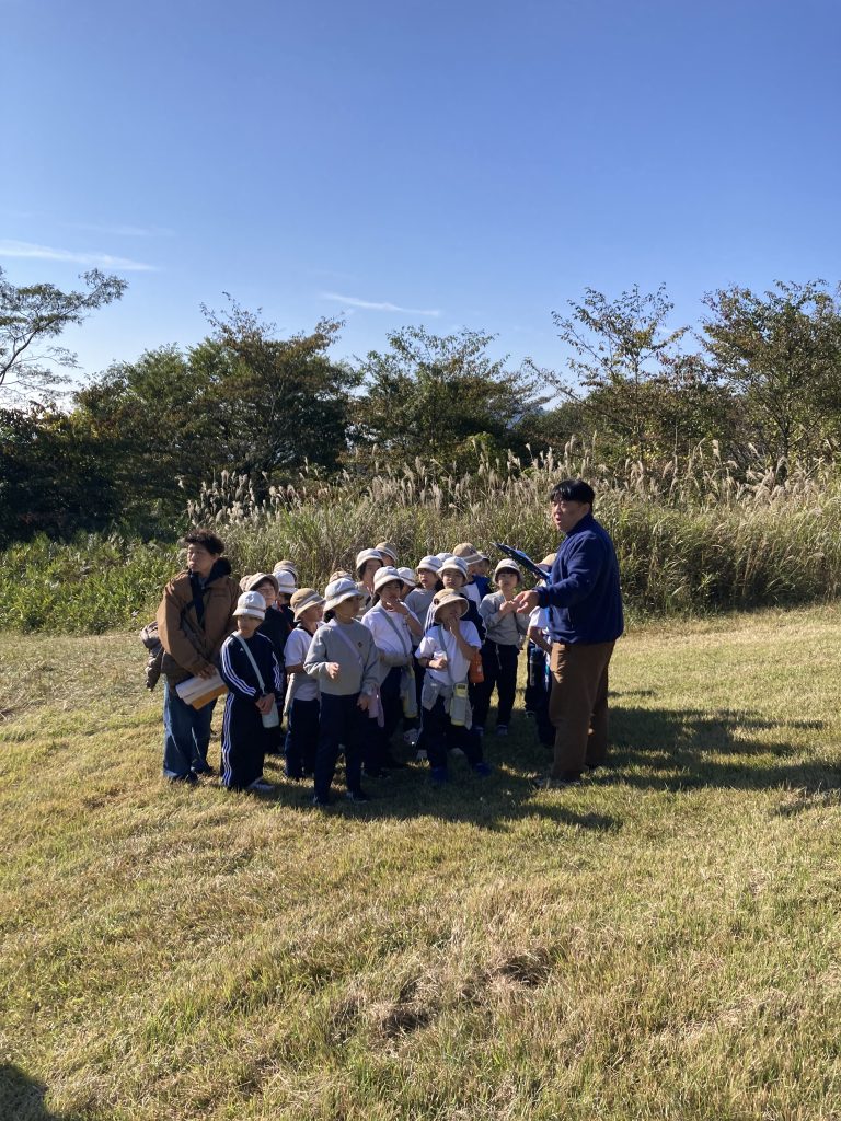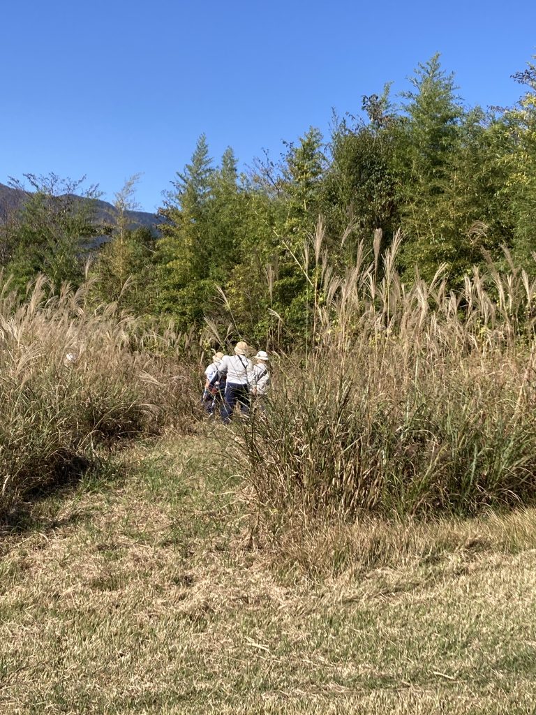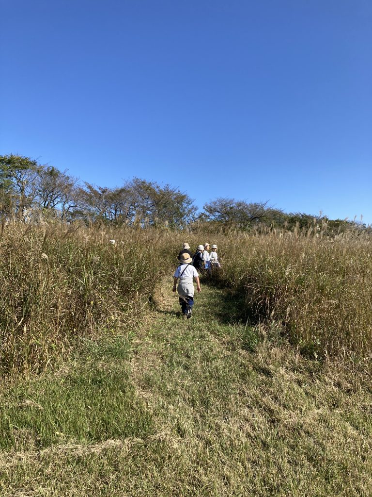 そして始まった「すすきの迷路」。これは班ごとに行動します。子ども達よりも背の高いススキの中で様々な生き物の看板を見つけます。イノシシが見つからない!とニコニコ顔で、再びススキの森へ消えて行きました。