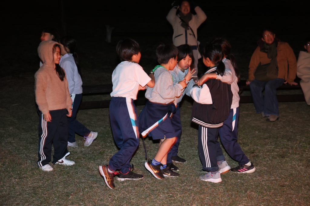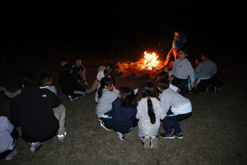 そして締めくくりは、キャンプファイヤーです。この日に向けて、レクリエーション係が本当に一生懸命がんばってきました。二年生のキャンプファイヤーは。YMCAの方とのコラボレーションで行います。子ども達が準備してきた「猛獣狩り」で大興奮し、YMCAの方が準備して下さった「フォークダンス」で笑顔いっぱいの花が咲きました♪