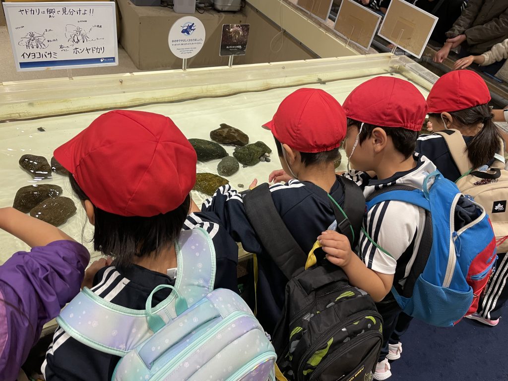 昼食後は館内でグループごとに地図を見ながら進み、さまざまな生き物を見つけました。広い館内でしたが、友だちと協力して楽しく館内を回る姿が見られました。グループミッションの次はイルカショーでした。イルカの鳴き声やジャンプがあるたびに歓声が上がり、どの子も笑顔いっぱいでした。