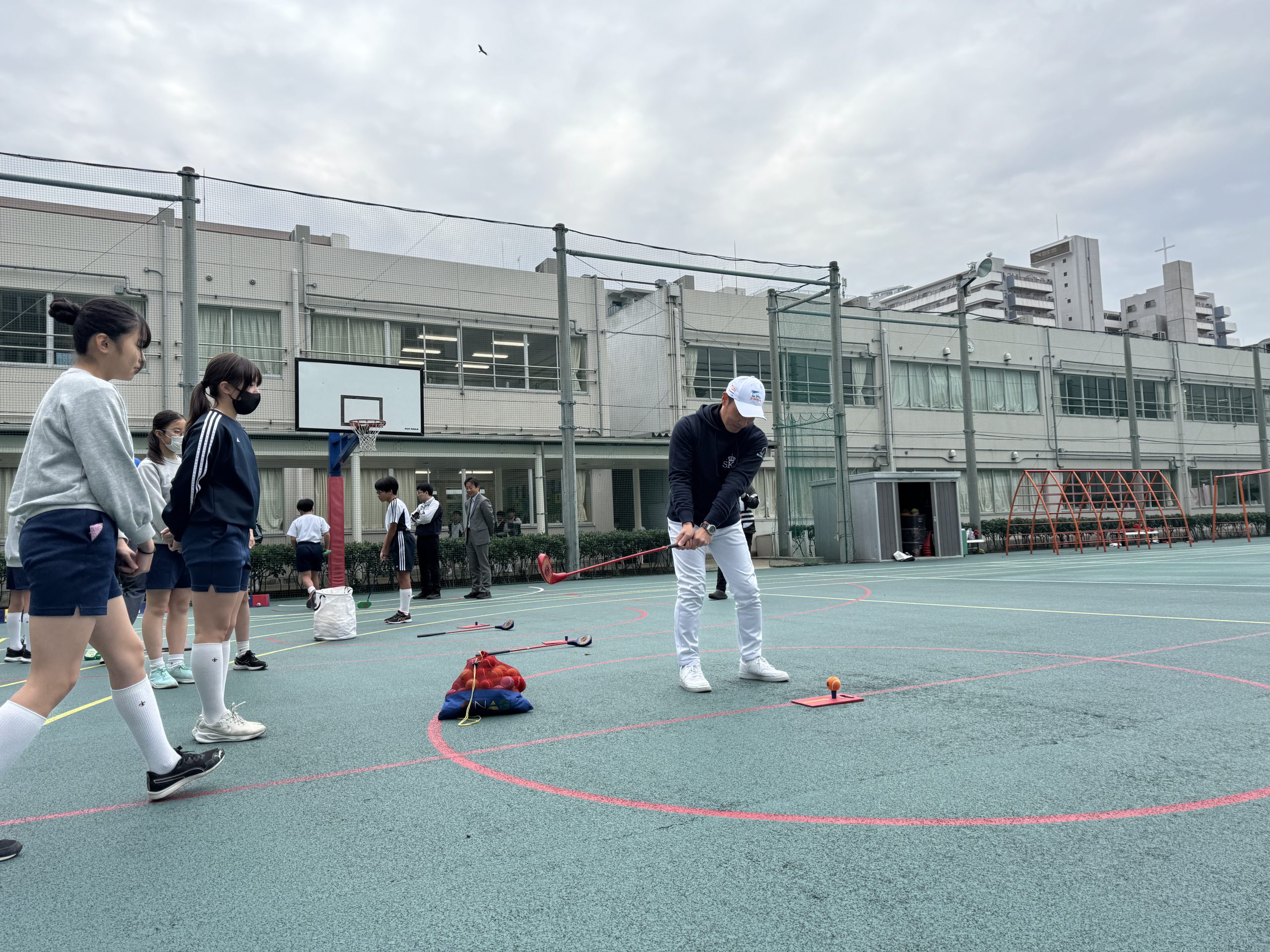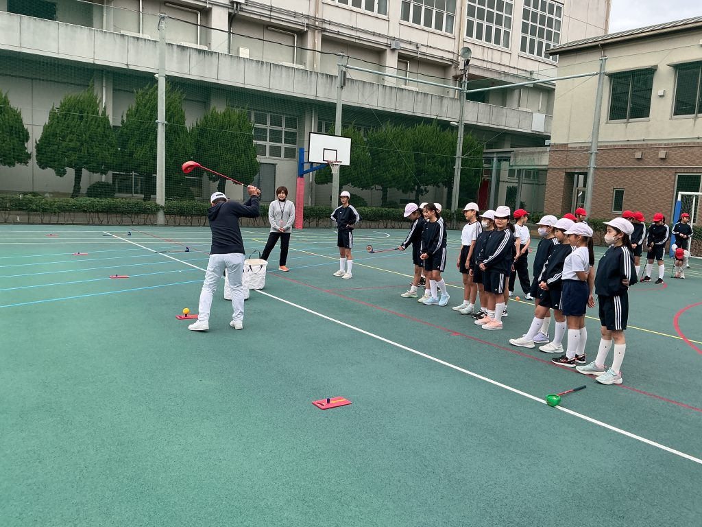 体育の特別授業で2名のプロによるゴルフ教室を行いました。