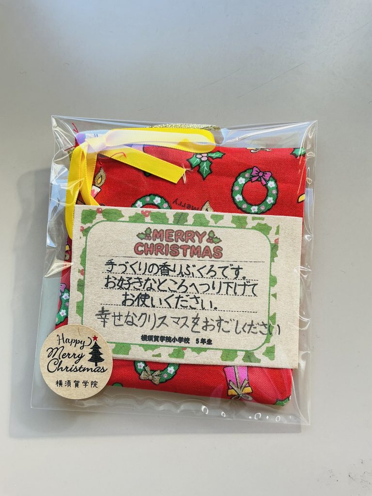 毎年、横須賀学院小学校では、特別養護老人ホームシャロームのクリスマス礼拝の賛美奉仕をさせていただいています。今年もハンドベルでの演奏と賛美、家庭科の授業で心を込めて作ったクリスマスのプレゼントも時間をかけて準備してきました。しかし今回は、訪問先の利用者の方々の体調を優先し、残念ながら訪問の代わりにビデオメッセージを送ることになりました。