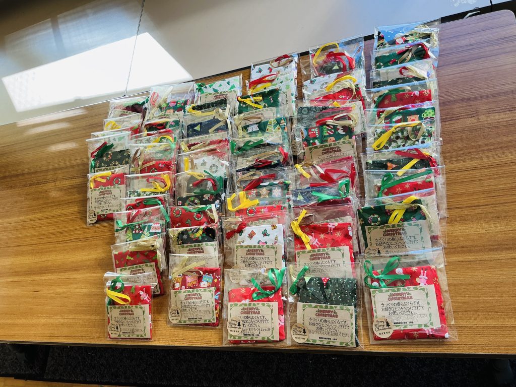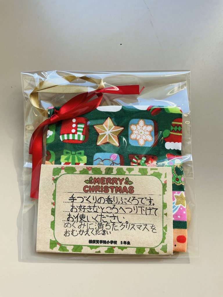 ハンドベル2曲の演奏と、家庭科で作ったにおい袋に心を込め、直接は会うことが叶わず、残念でしたが、クリスマスの贈り物をお届けします。