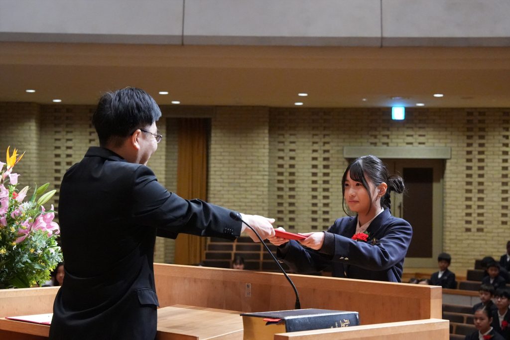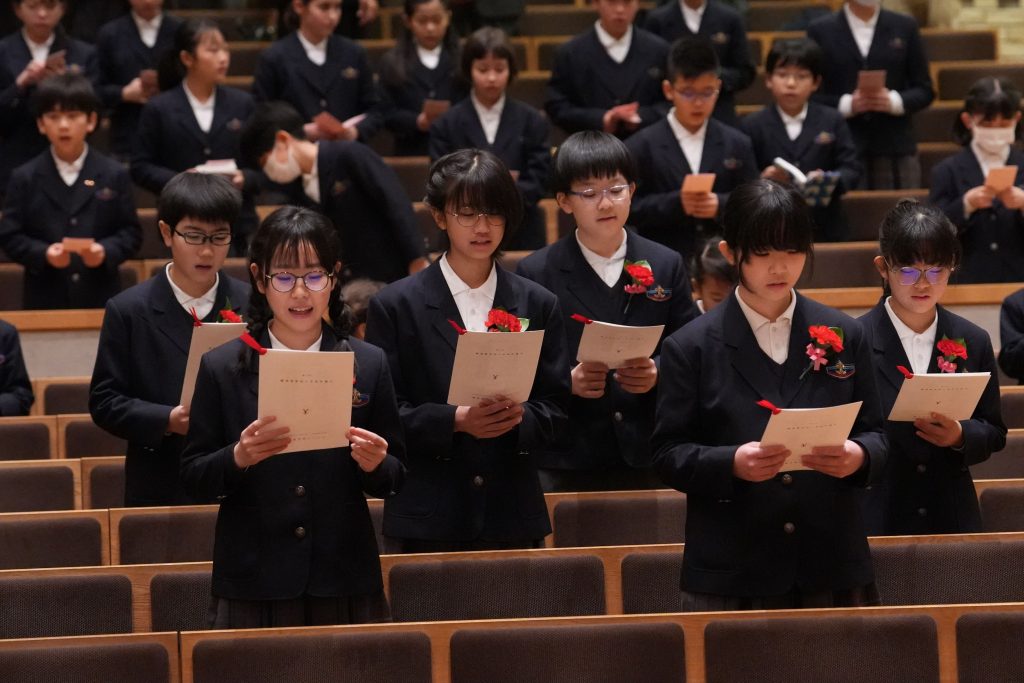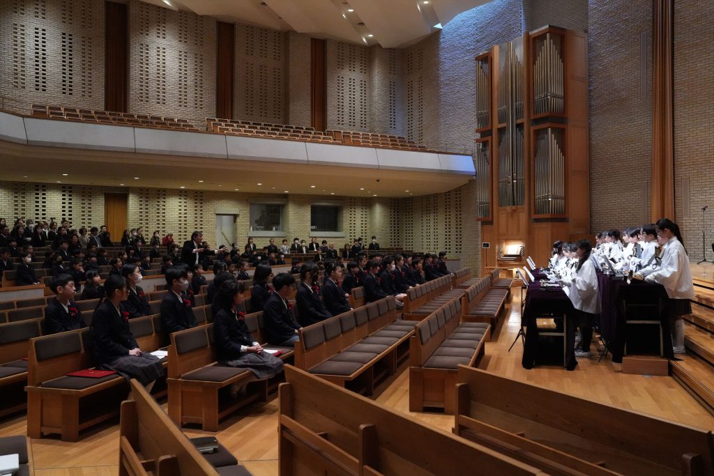 卒業生のこれからの歩みが、神様の愛によって満たされ、光の子として、隣人を愛する人として、豊かなものとなりますように。6年間、この学び舎で得た一つ一つの経験が、これからの人生の糧となりますように。