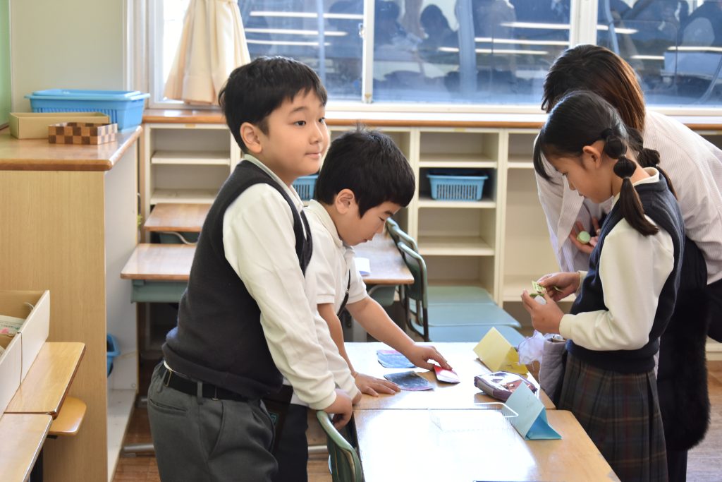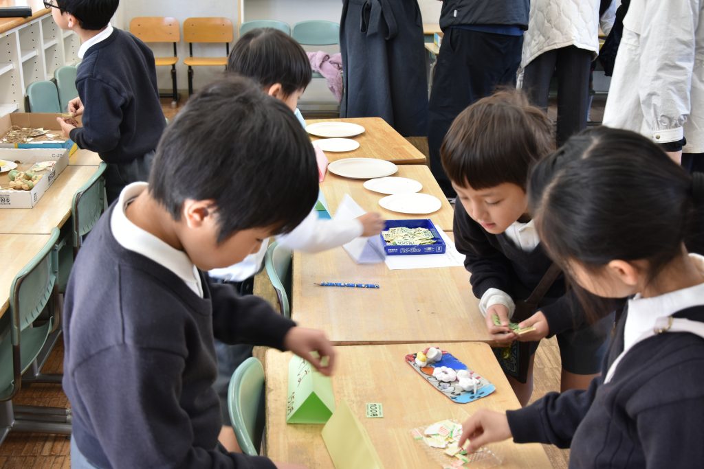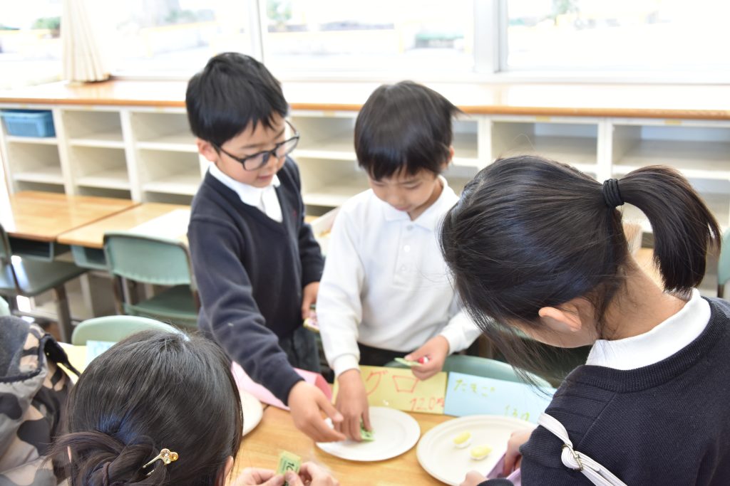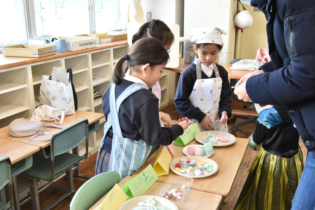 1年生では、毎年「おみせやさん」を開いています。今年も生活科・算数科・国語科の学習とつなげながら、年明けから少しずつ準備を進めてきました。